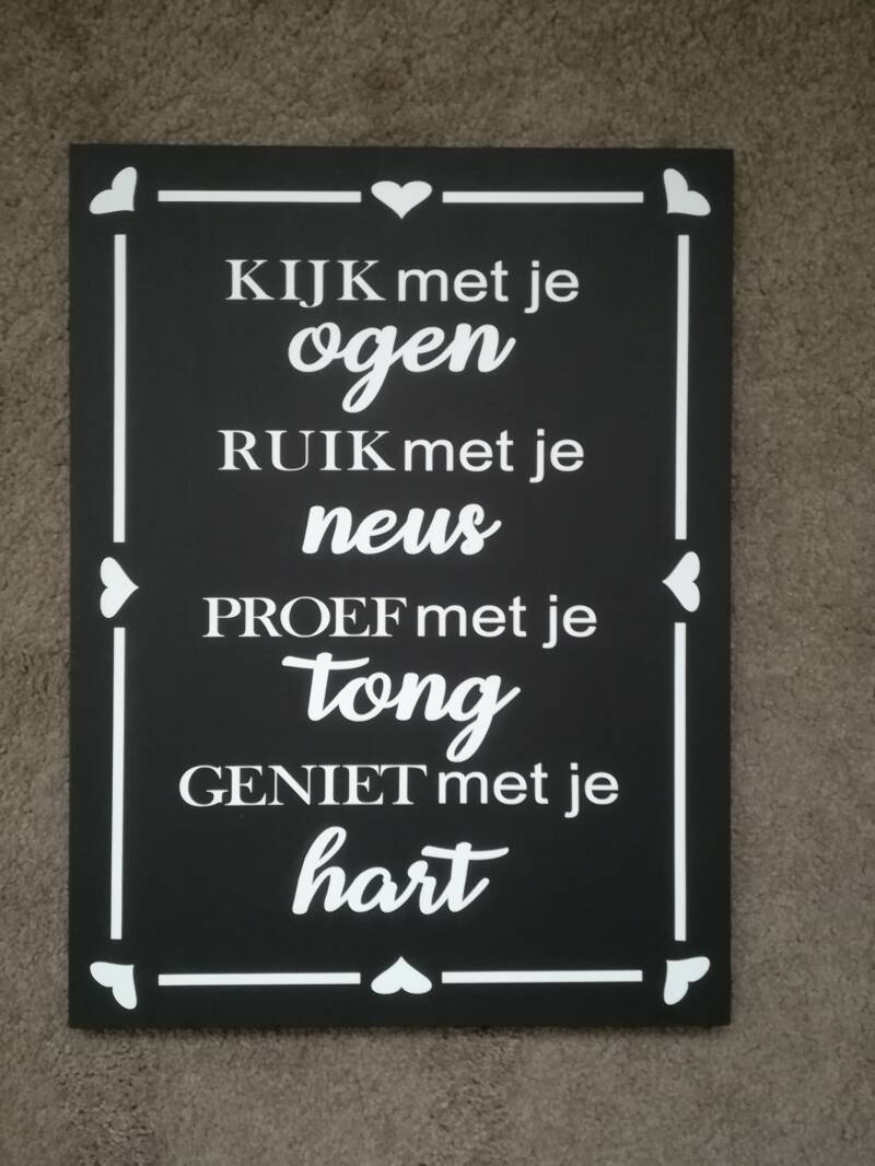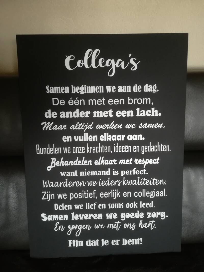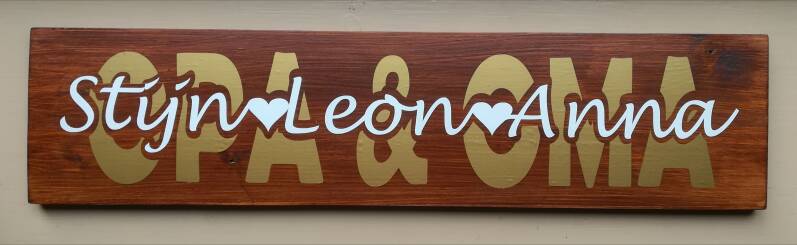 Tekstborden. Diverse maten, kleuren en teksten mogelijk in overleg. Prijs afhankelijk van de maat.