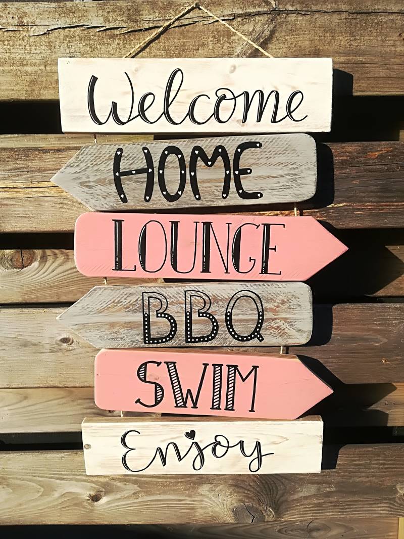 Wegwijsbordjes hangend of op een paal. Diverse teksten en kleuren in overleg mogelijk.
